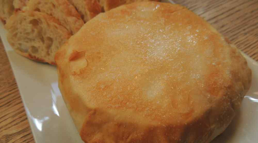 Once frozen, you can place the Brie en Croute on a vegetable oiled sheet and set the oven for 350 degrees. When the oven reaches this temperature, you will then bake the Brie en Croute until golden (about 15 minutes).