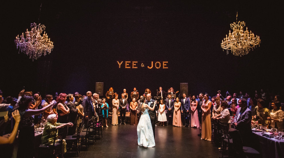 The theatre, with it’s 1,500 empty seats was vast with a concentration of family and friends on the main stage. It made the reception feel extra special. To be surrounded by this wonderfully historic space and the thought of the tremendous amount of art and performances that have taken place in the room was overwhelmingly welcomed. It was Yee & Joe’s day and they were definitely center stage.