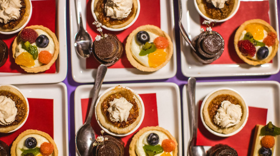 Dessert: Mini Fudge 3-tier Cake // Berry Tart // Tiny Pecan Pie // NY Style Cheesecake // Ice Cream Sandwiches with all the fixings // Mini Fresh Made Donuts & Shots of Iced Coffee